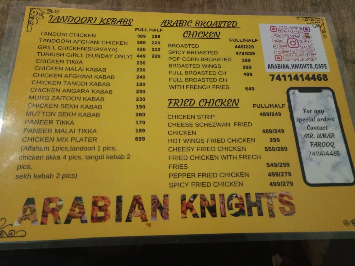 Introducing the menu at Araabian Knights Resto Cafe & Family Restaurant, located on Solapur Rd, Vijayapura, it’s a culinary haven for families and food enthusiasts alike. The spacious setup is perfect for gatherings, ensuring everyone, including kids, can enjoy their meals comfortably.
